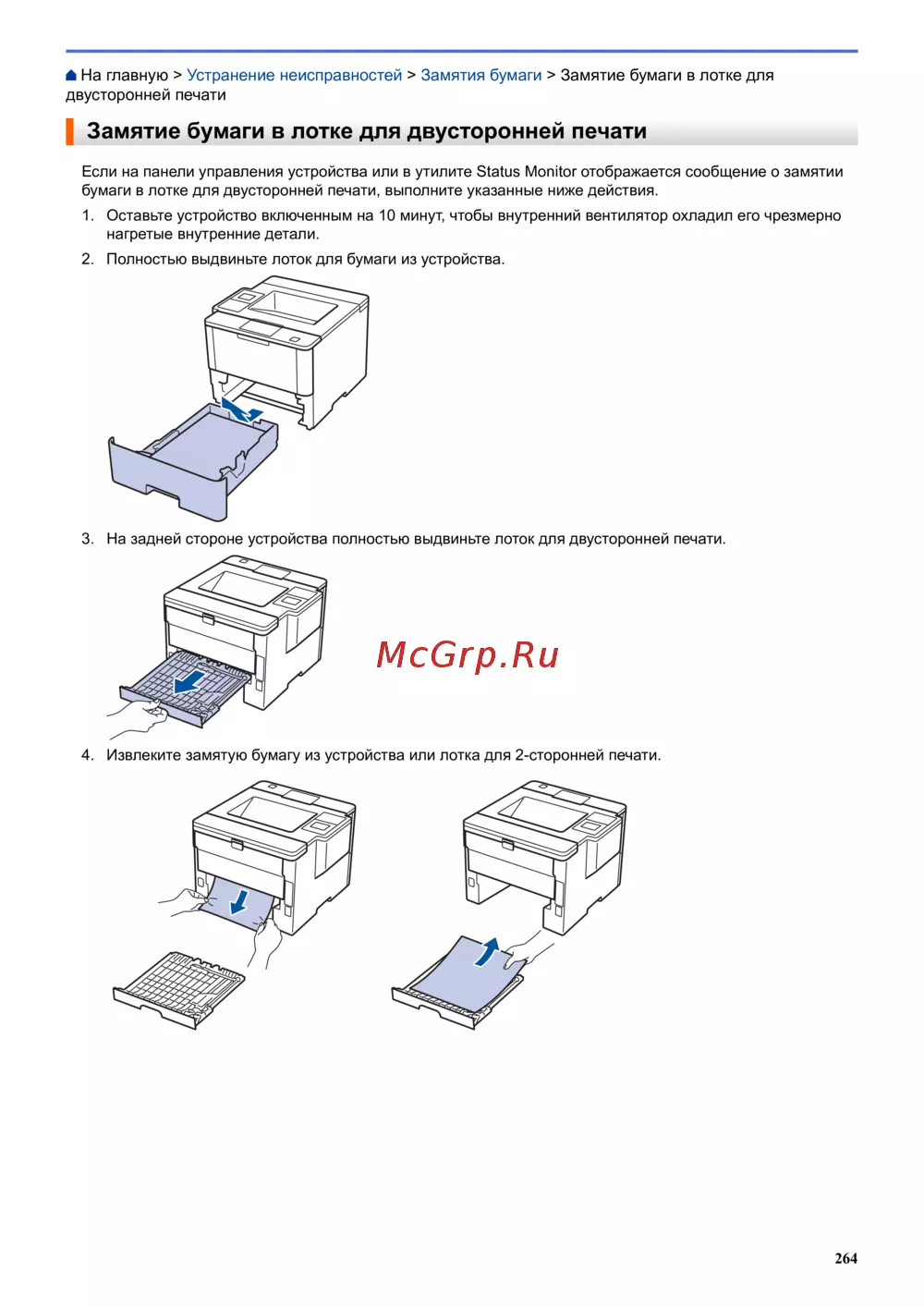Brother HL-L5100DNT — как устранить замятие бумаги в лотке для двусторонней печати [269/407]