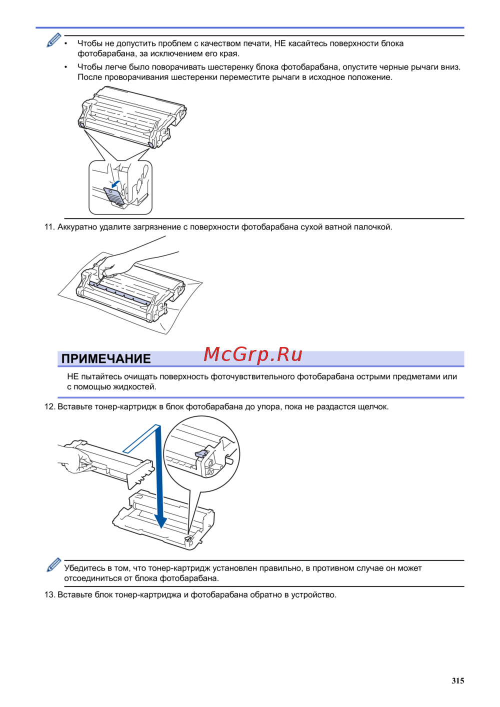 Brother HL-L5100DNT — правильное обращение с фотобарабаном и тонер-картриджем [320/407]