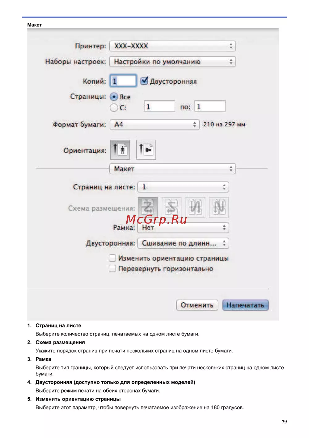 Выберите количество страниц, печатаемых на одном листе бумаги.