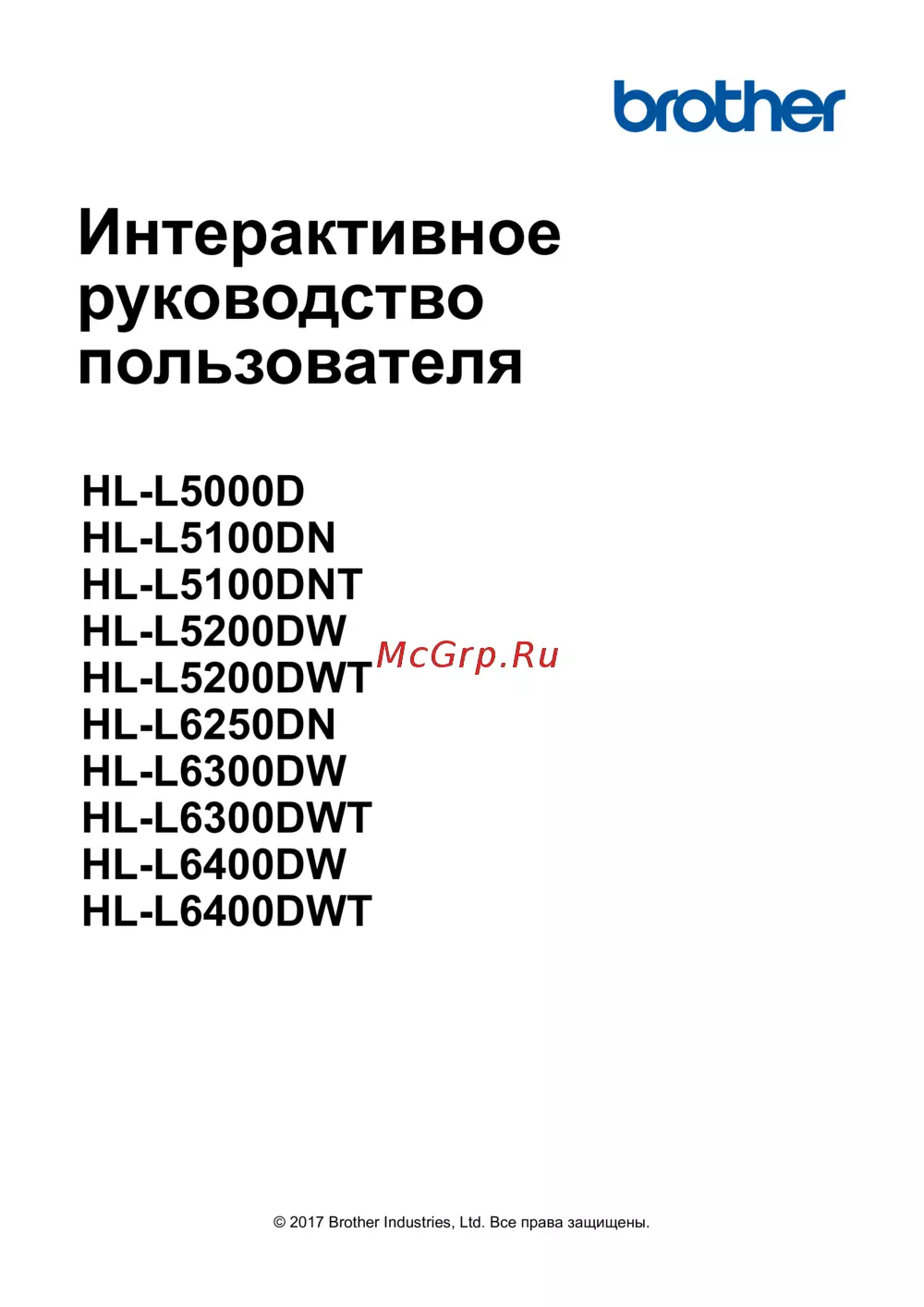 - Интерактивное руководство пользователя hl l5000d hl l5100dn hl l5100dnt hl l5200dw hl l5200dwt hl l6250dn hl l6300dw hl l6300dwt hl l6400dw hl l6400dwt p.1