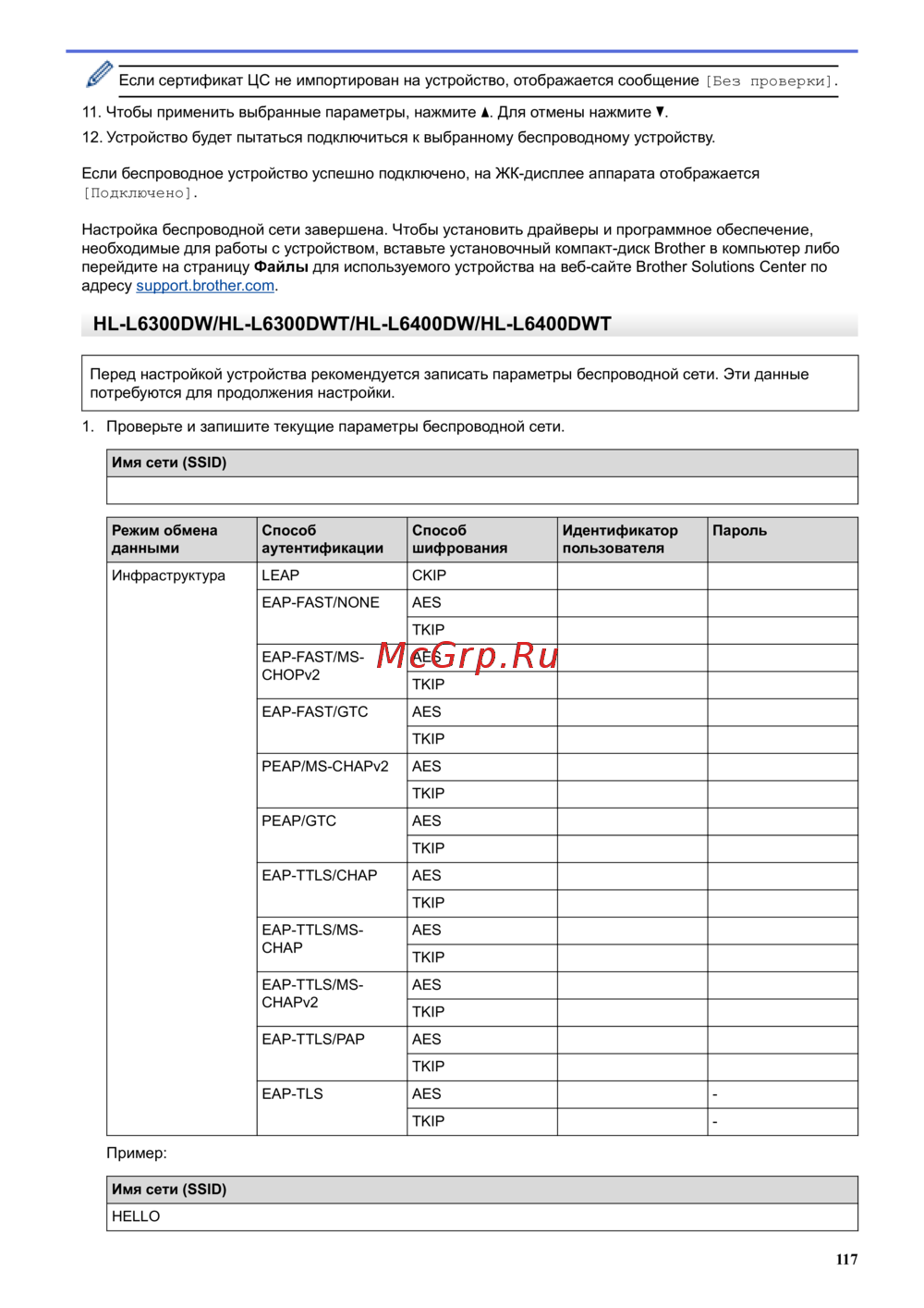 ![Brother HL-L5100DNT [122/407] Если сертификат цс не импортирован на устройство отображается сообщение без проверки](/views2/1250942/page122/bg7a.png)