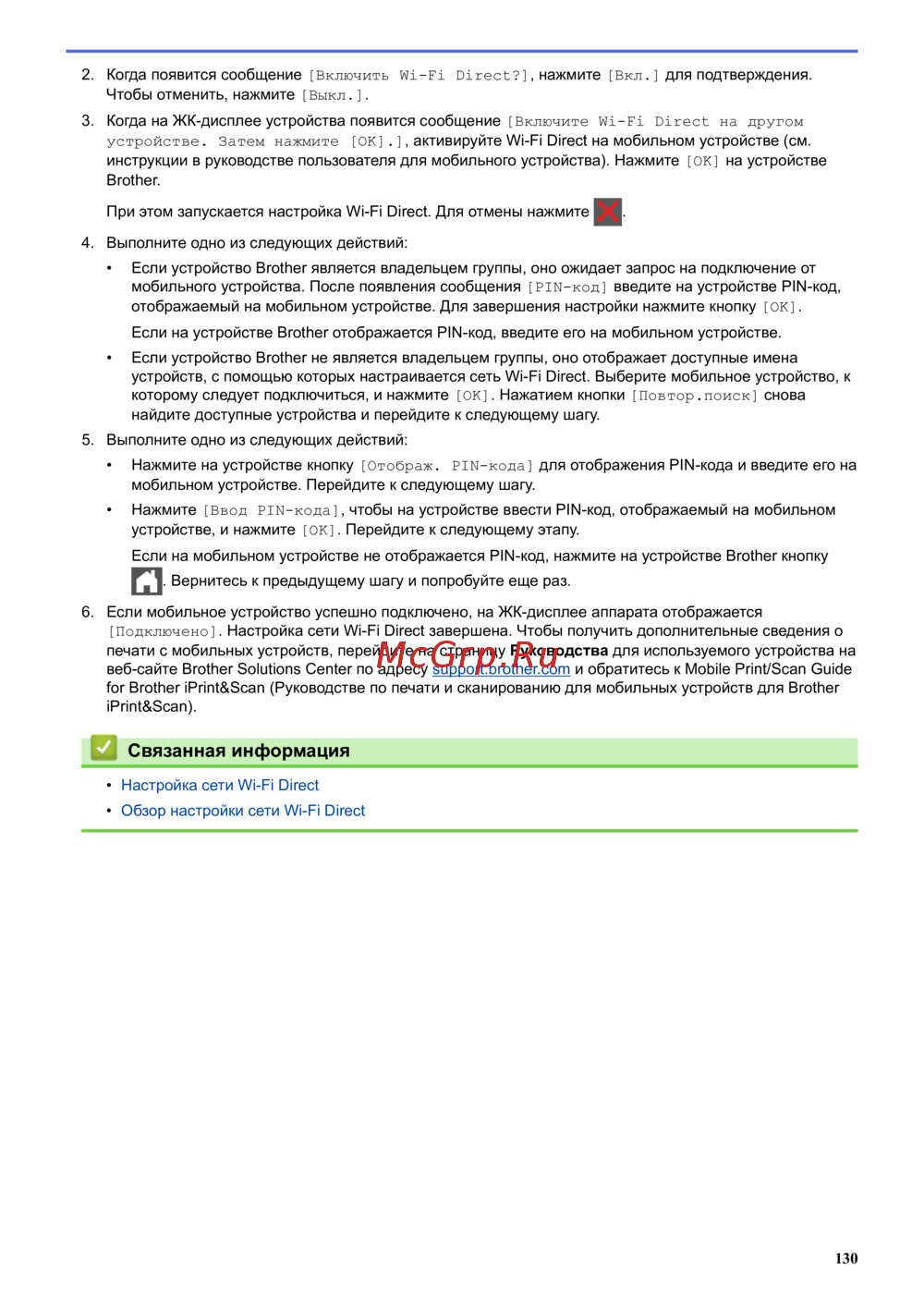 Если на мобильном устройстве не отображается PIN-код, нажмите на устройстве Brother кнопку