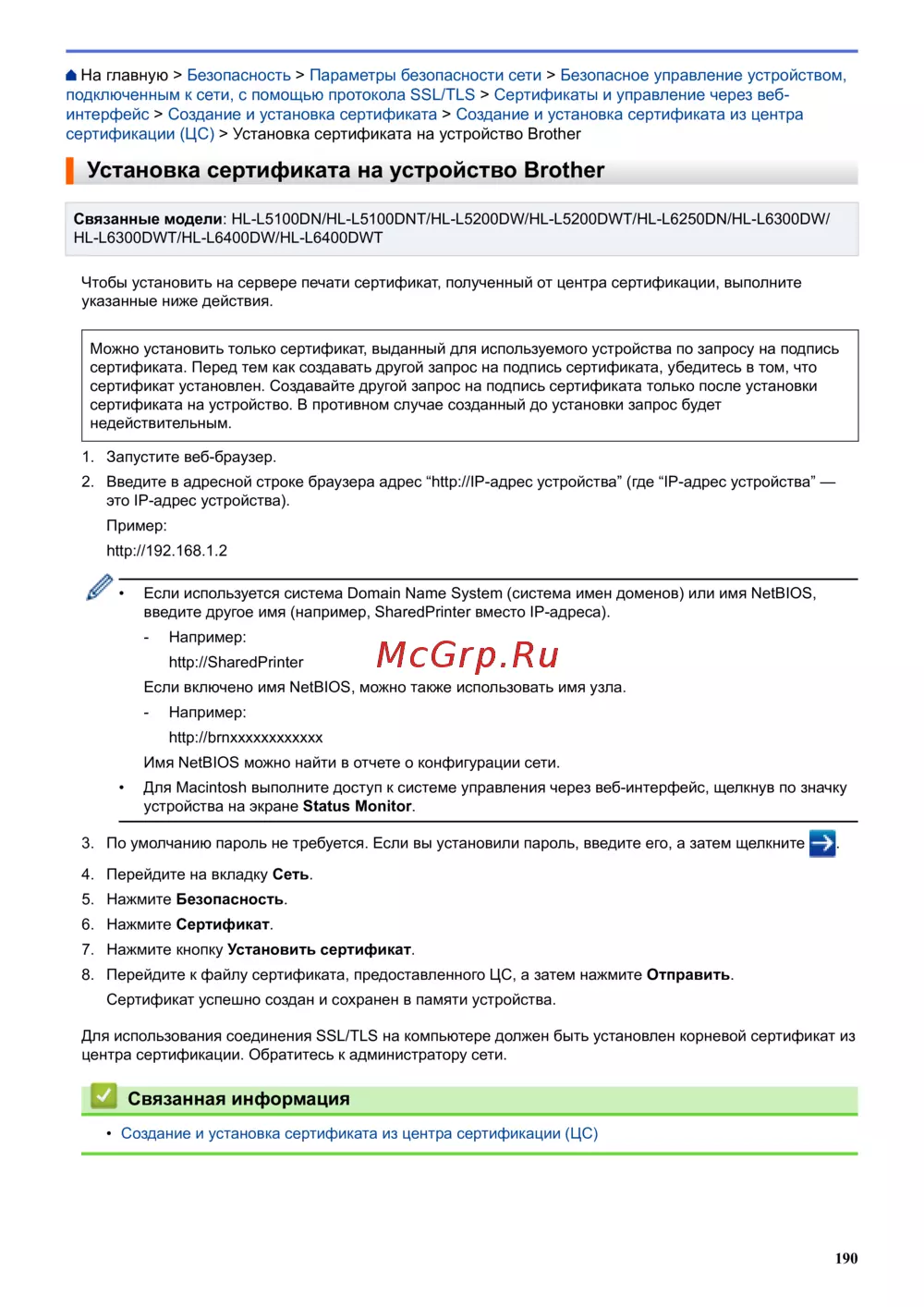 Brother HL-L6250DN — установка сертификата SSL/TLS на сетевое устройство [195/407]