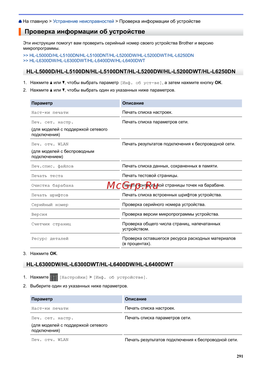 Brother HL-L6250DN [296/407] Проверка информации об устройстве