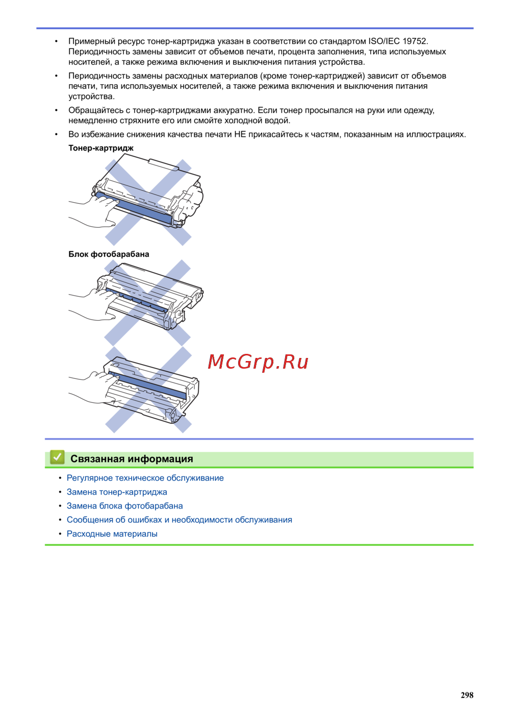 • Периодичность замены расходных материалов (кроме тонер-картриджей) зависит от объемов