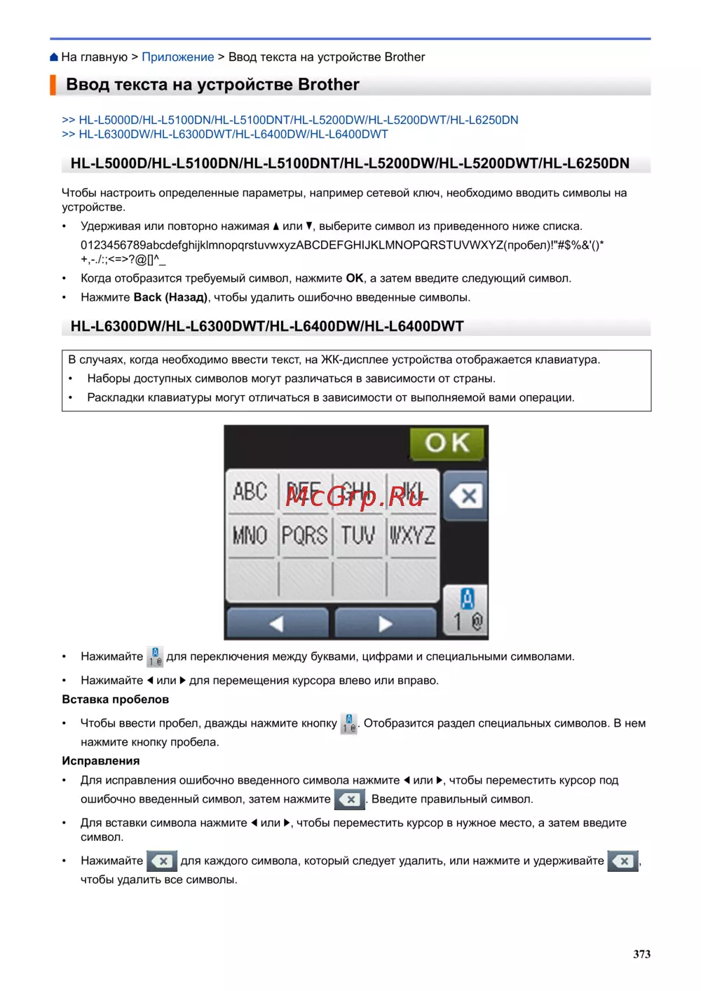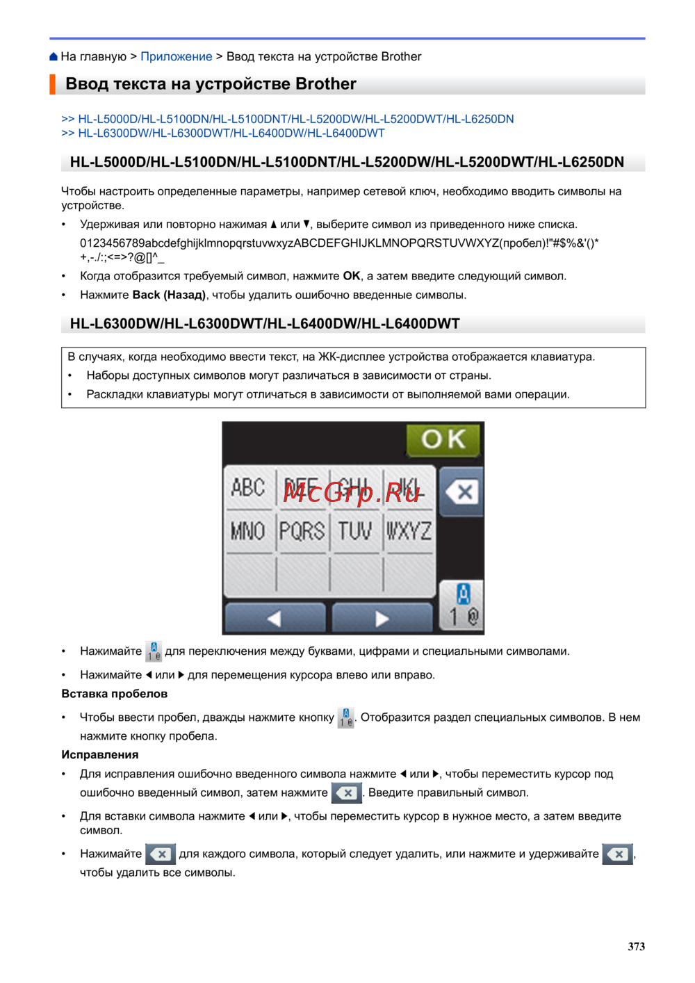 Brother HL-L6250DN [378/407] Ввод текста на устройстве brother