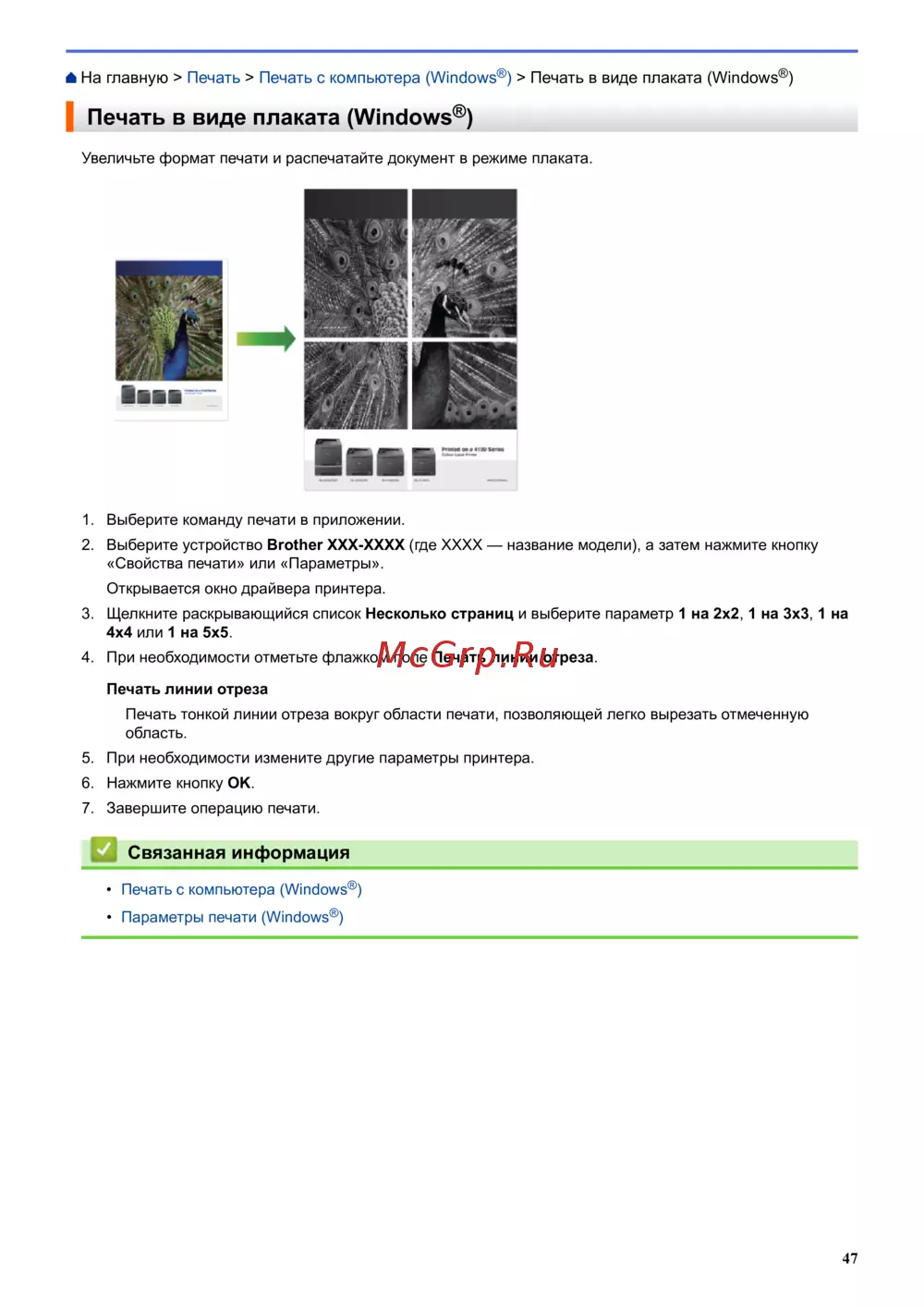 Печать тонкой линии отреза вокруг области печати, позволяющей легко вырезать отмеченную