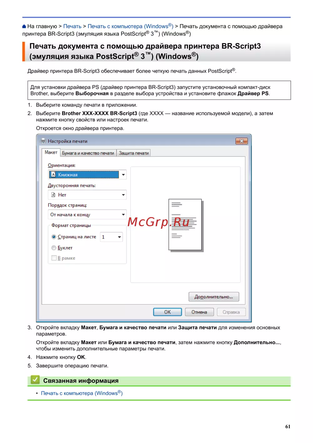 Драйвер принтера BR-Script3 обеспечивает более четкую печать данных PostScript