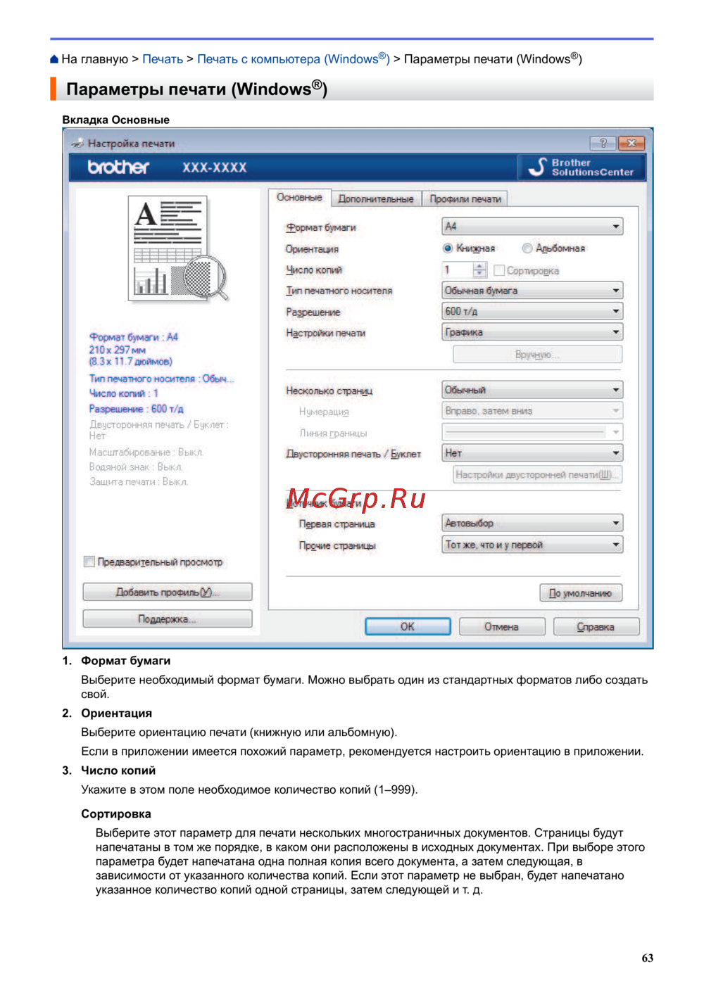 ) > Параметры печати (Windows