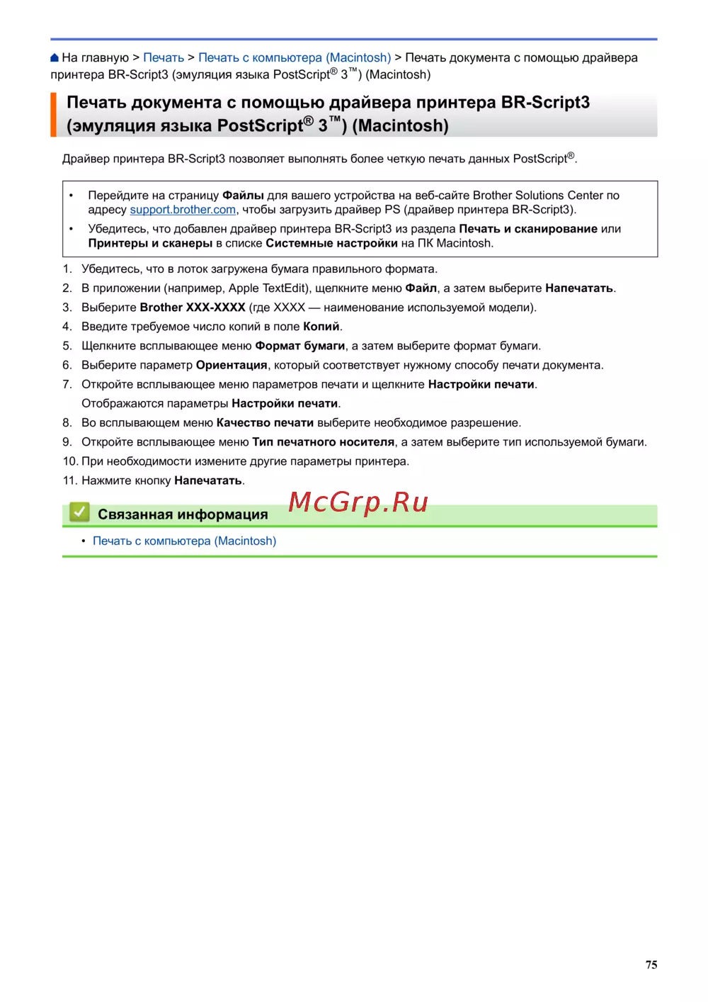 На главную > Печать > Печать с компьютера (Macintosh) > Печать документа с помощью драйвера