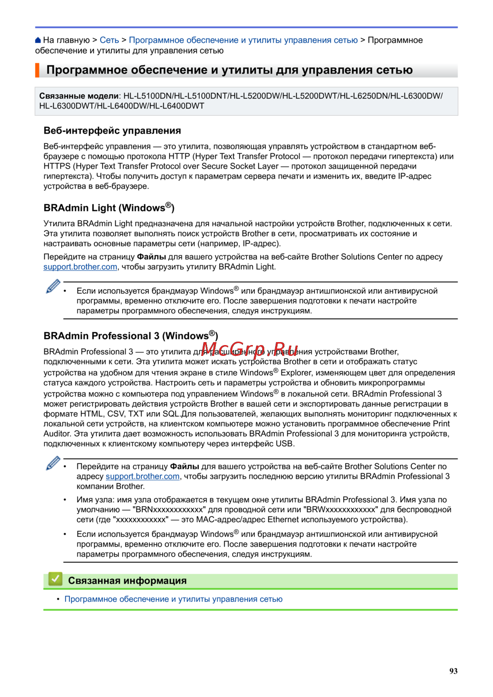 Brother HL-L6250DN — программное обеспечение и утилиты для управления сетью [98/407]