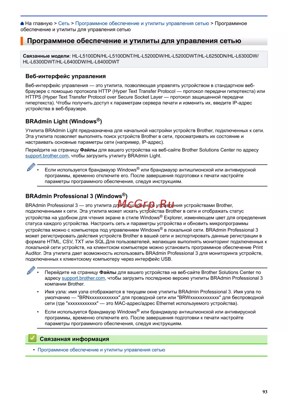 адресу support.brother.com, чтобы загрузить последнюю версию утилиты BRAdmin Professional 3