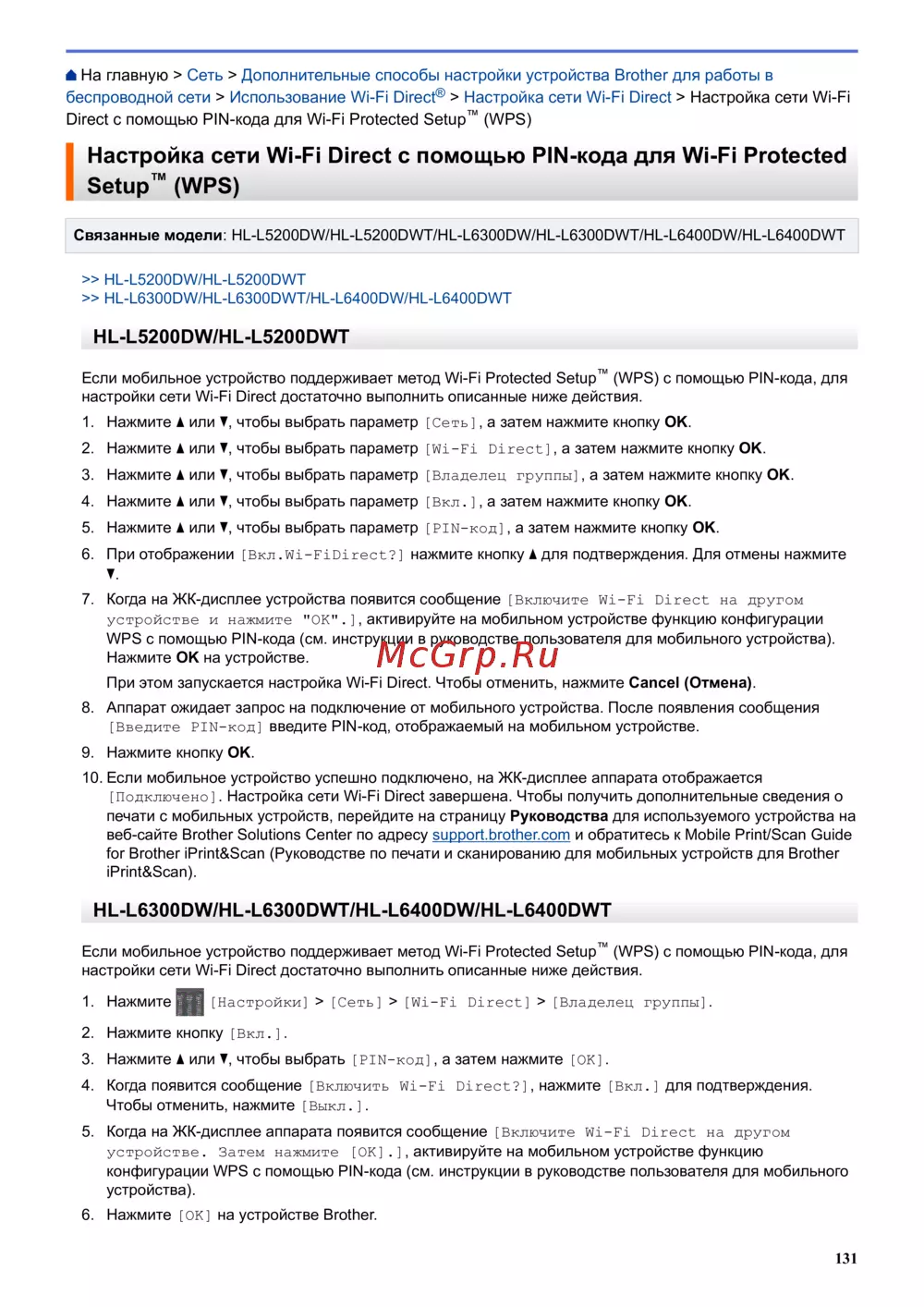 веб-сайте Brother Solutions Center по адресу support.brother.com и обратитесь к Mobile Print/Scan Guide