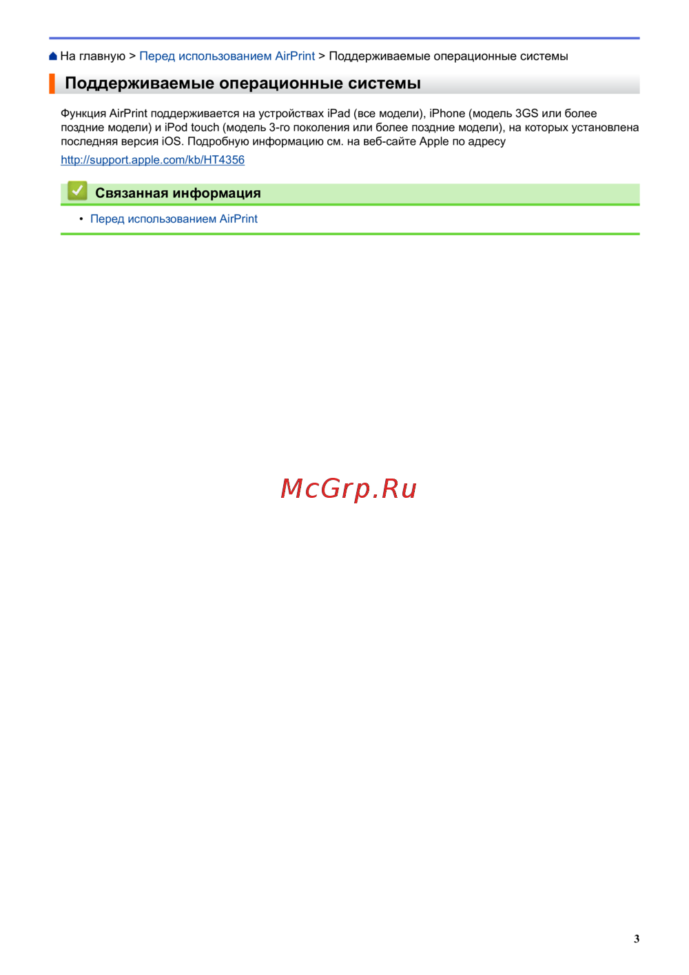 На главную > Перед использованием AirPrint > Поддерживаемые операционные системы