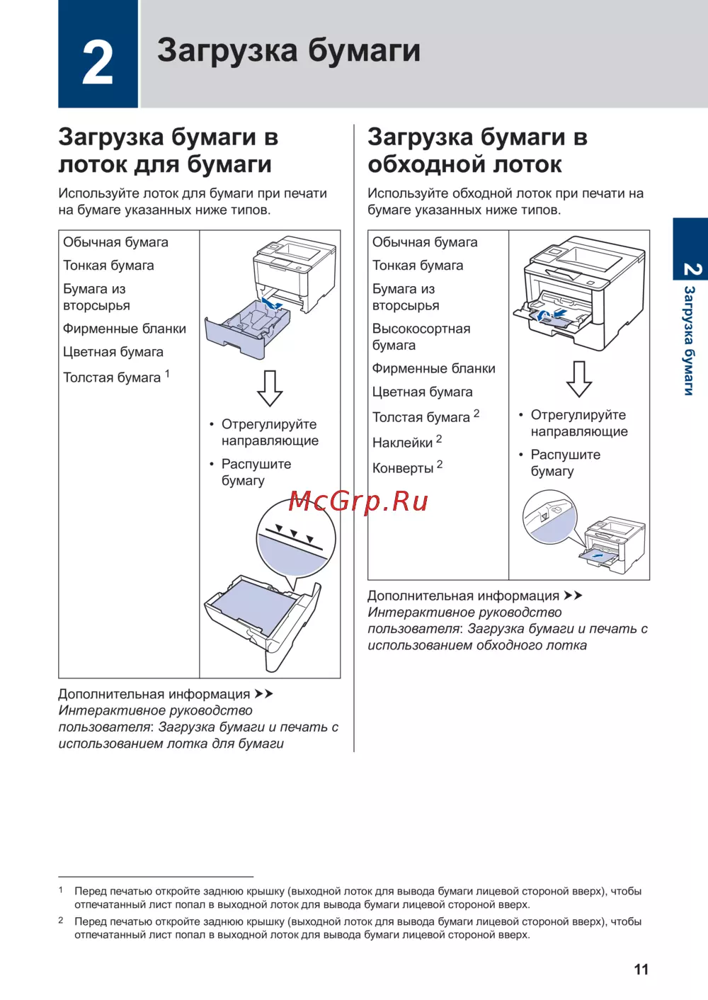 Узнайте, как правильно загружать различные типы бумаги в лотки для печати. Следуйте простым инструкциям для оптимального использования вашего устройства.