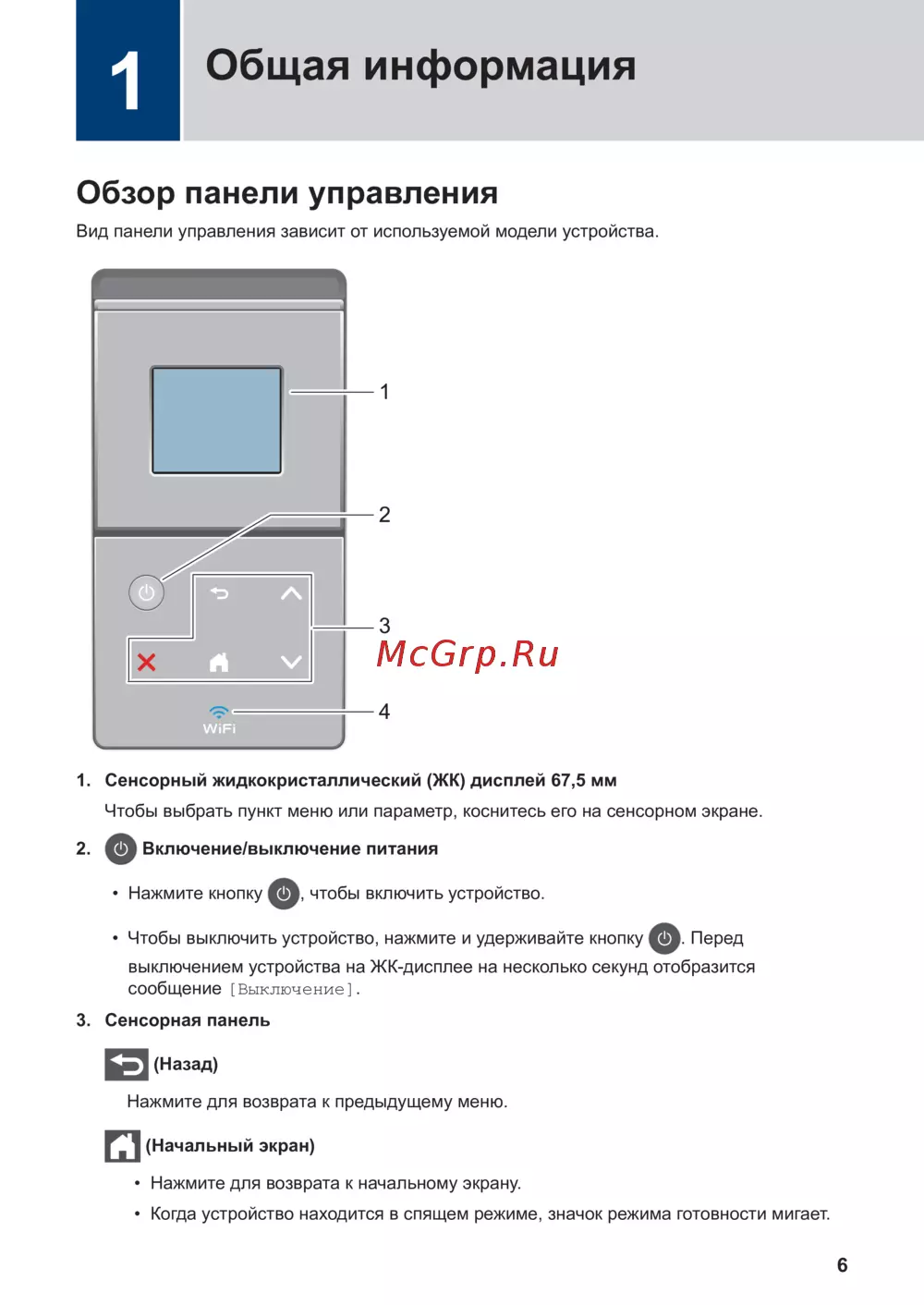 Вид панели управления зависит от используемой модели устройства.
