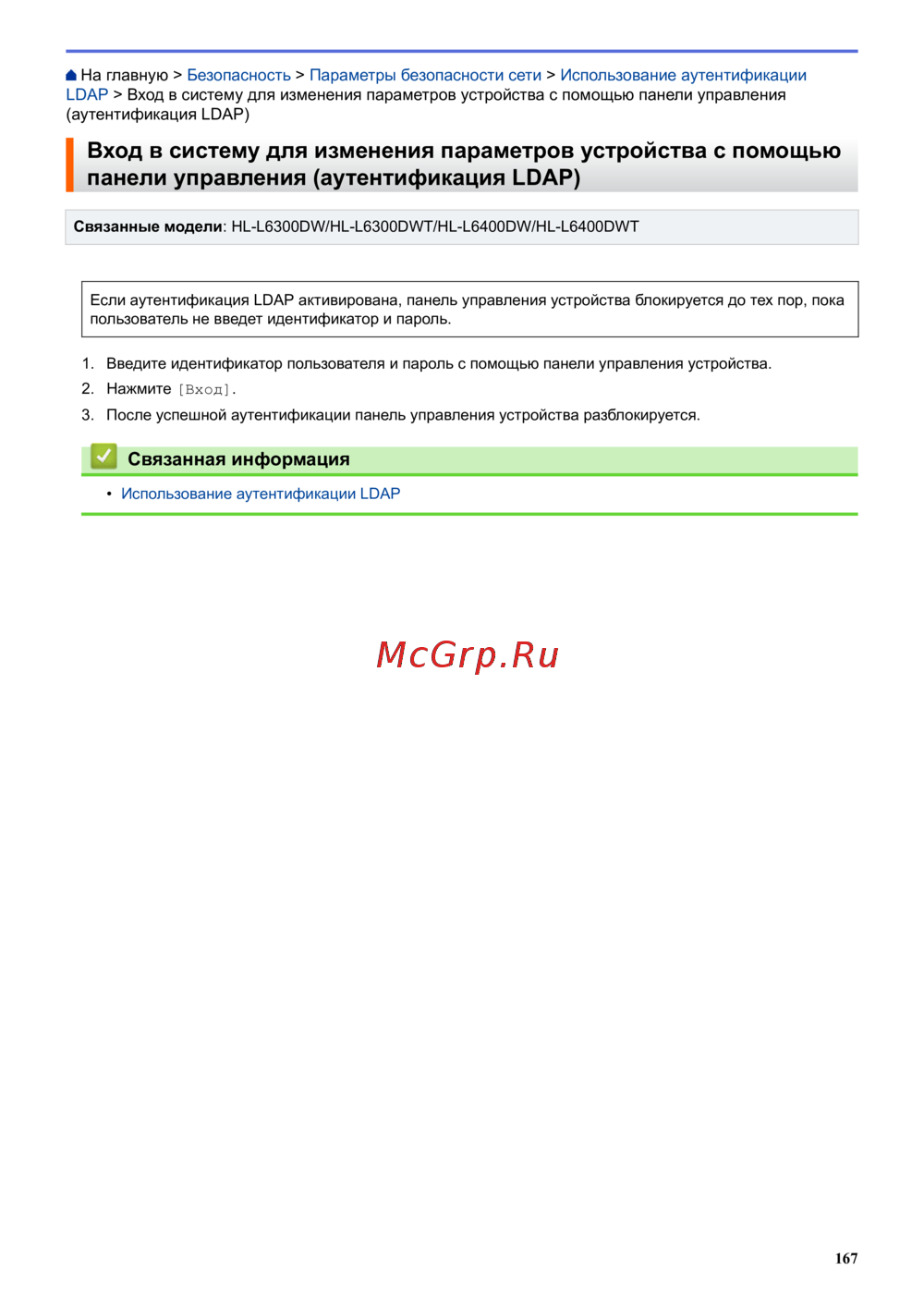 Brother HL-L6400DW — аутентификация LDAP для управления устройствами: пошаговое руководство [172/407]