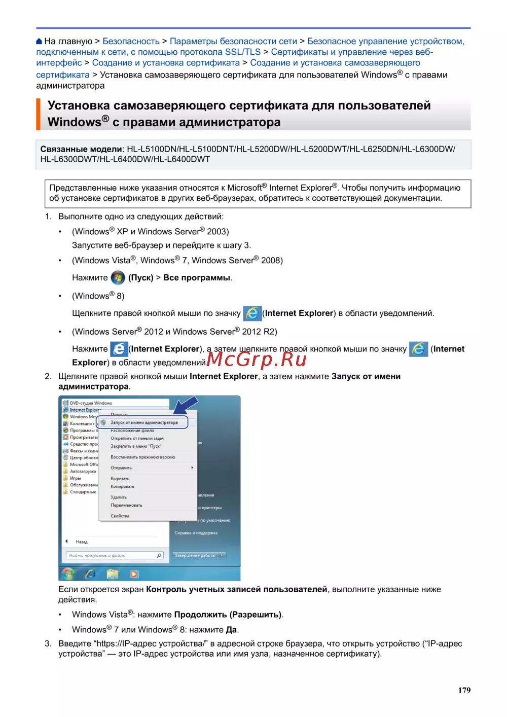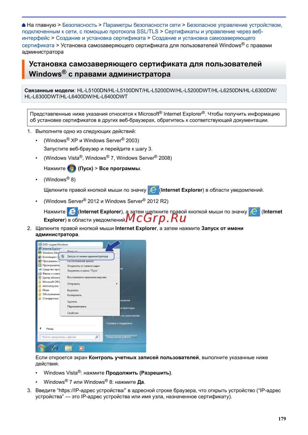 Brother HL-L6400DW [184/407] Установка самозаверяющего сертификата для пользователей window