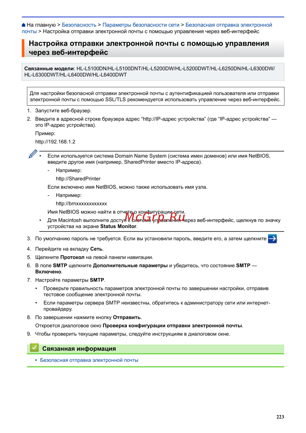 Brother HL-L6400DW — настройка безопасной отправки электронной почты через веб-интерфейс [228/407]