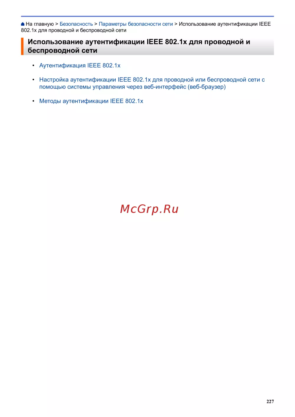 Brother HL-L6400DW [232/407] Использование аутентификации ieee 802 x для проводной и беспроводной сети