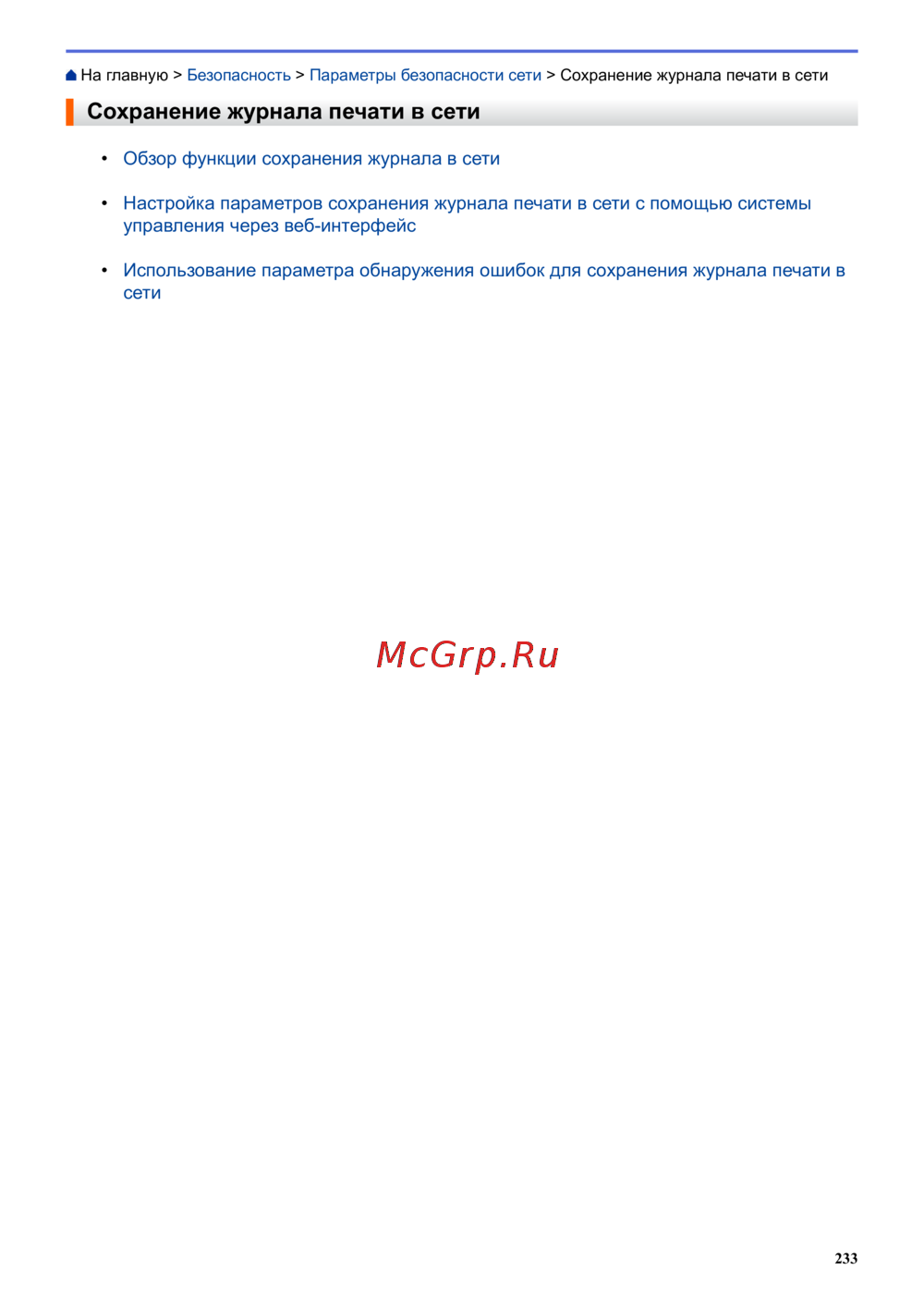 На главную > Безопасность > Параметры безопасности сети > Сохранение журнала печати в сети