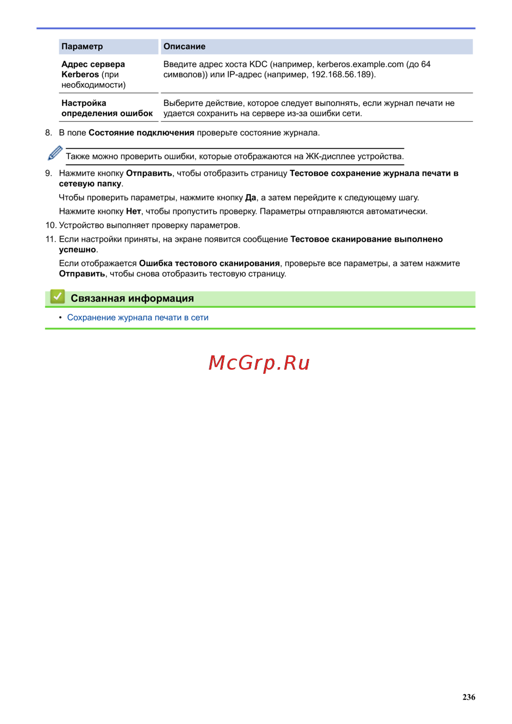 9. Нажмите кнопку Отправить, чтобы отобразить страницу Тестовое сохранение журнала печати в