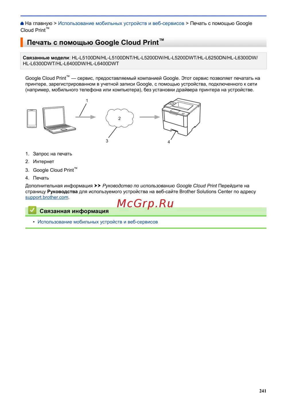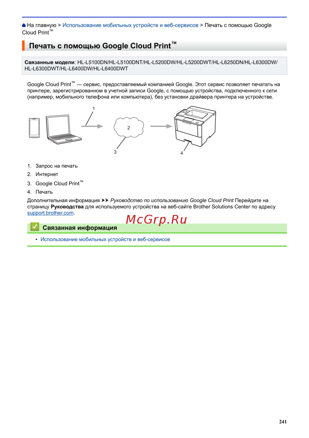 Дополнительная информация uu Руководство по использованию Google Cloud Print Перейдите на