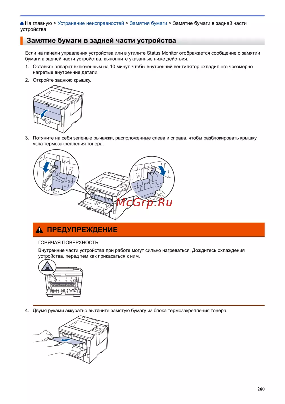 На главную > Устранение неисправностей > Замятия бумаги > Замятие бумаги в задней части