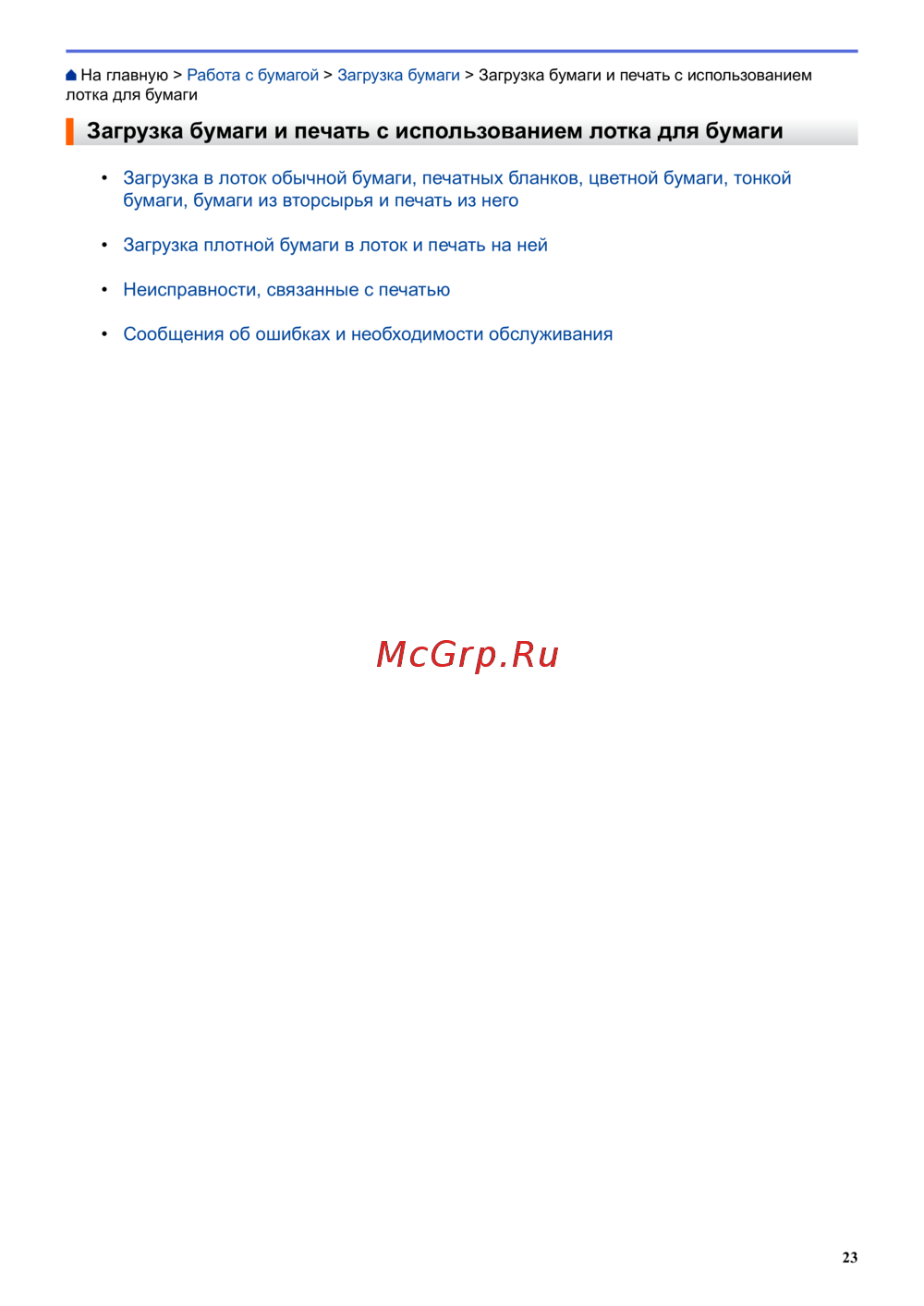 На главную > Работа с бумагой > Загрузка бумаги > Загрузка бумаги и печать с использованием