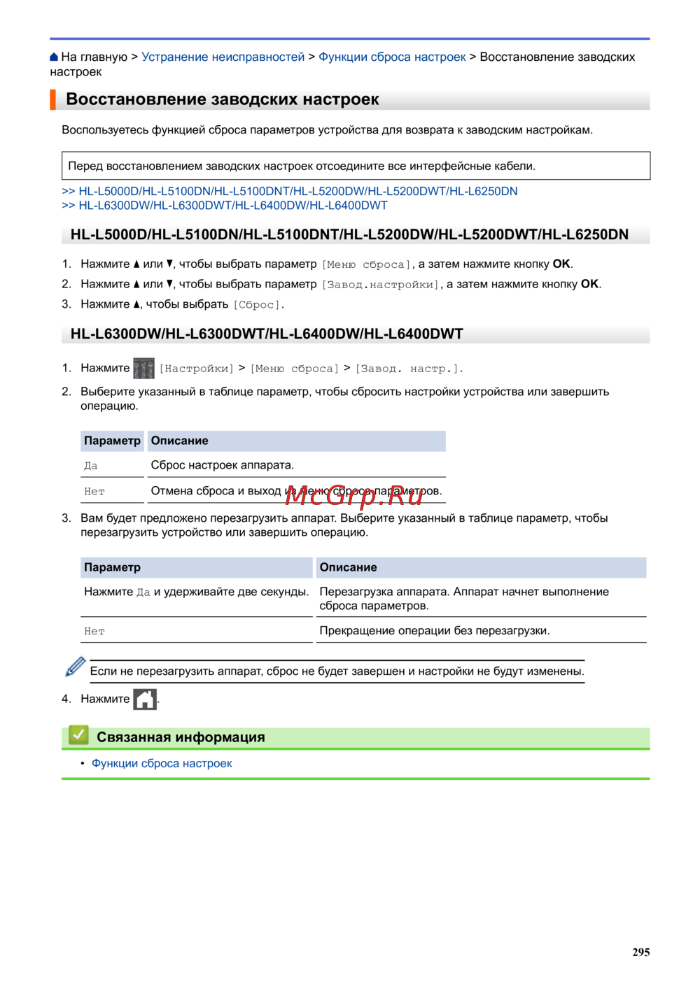 Brother HL-L6400DW [300/407] Связанная информация