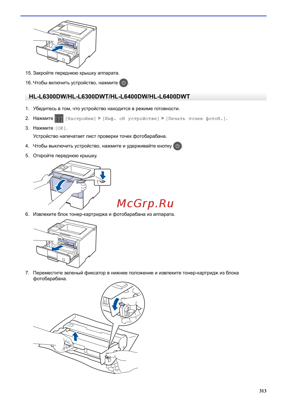 - Блок фотобарабана и тонер картридж это два разных узла p.380