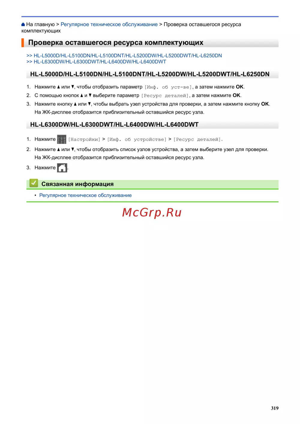 Brother HL-L6400DW [324/407] Связанная информация