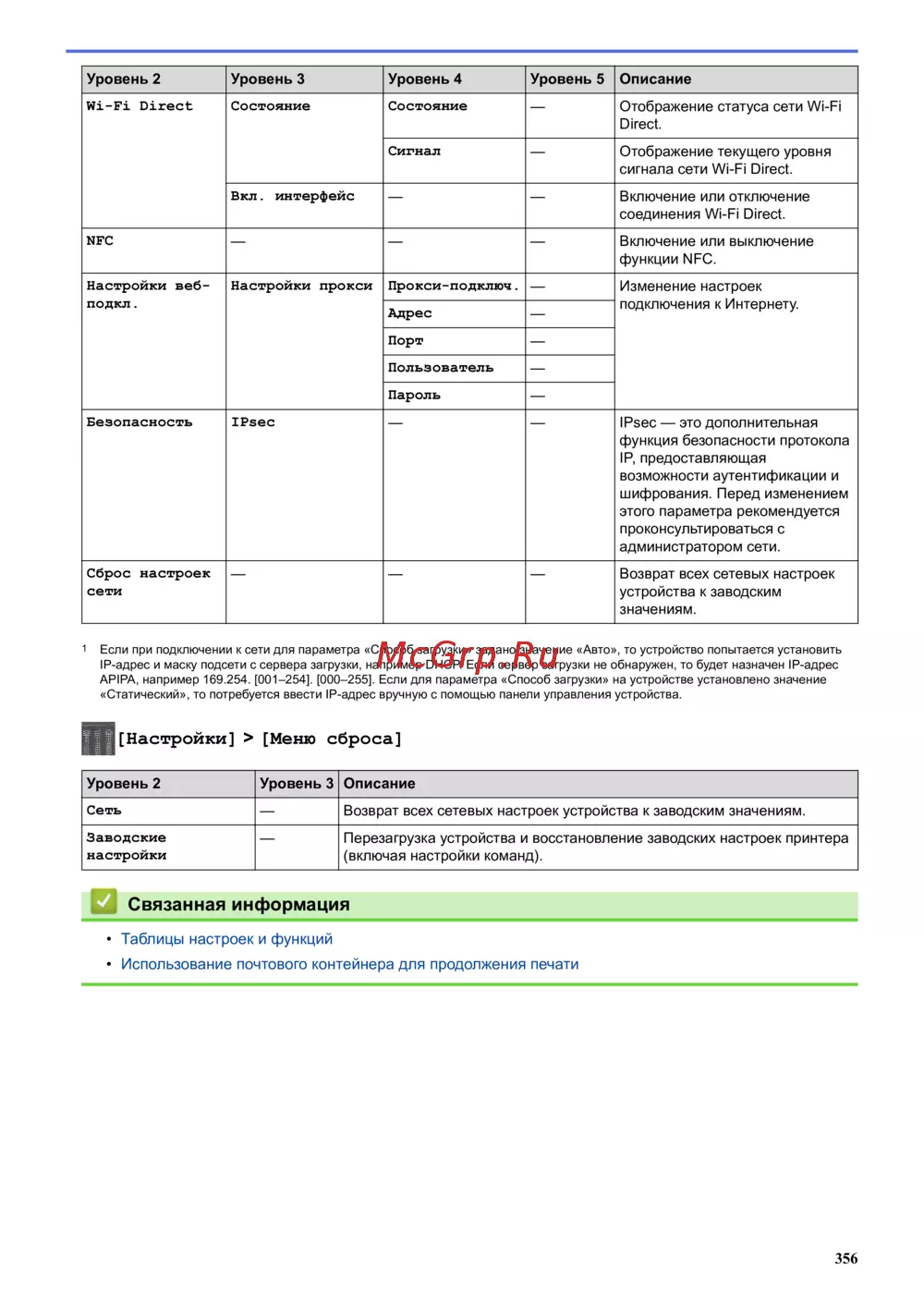 — Перезагрузка устройства и восстановление заводских настроек принтера