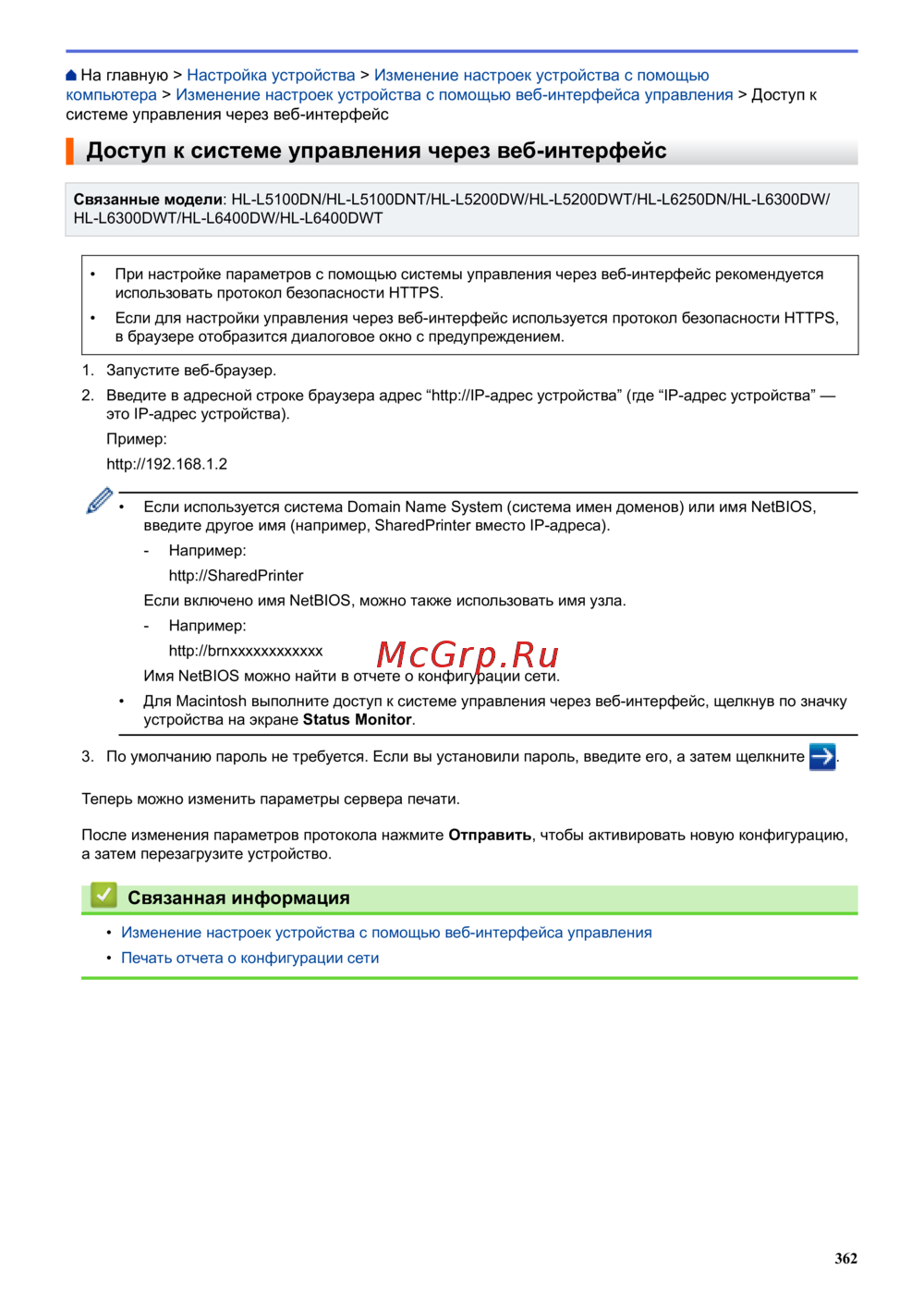 Brother HL-L6400DW [367/407] Связанная информация