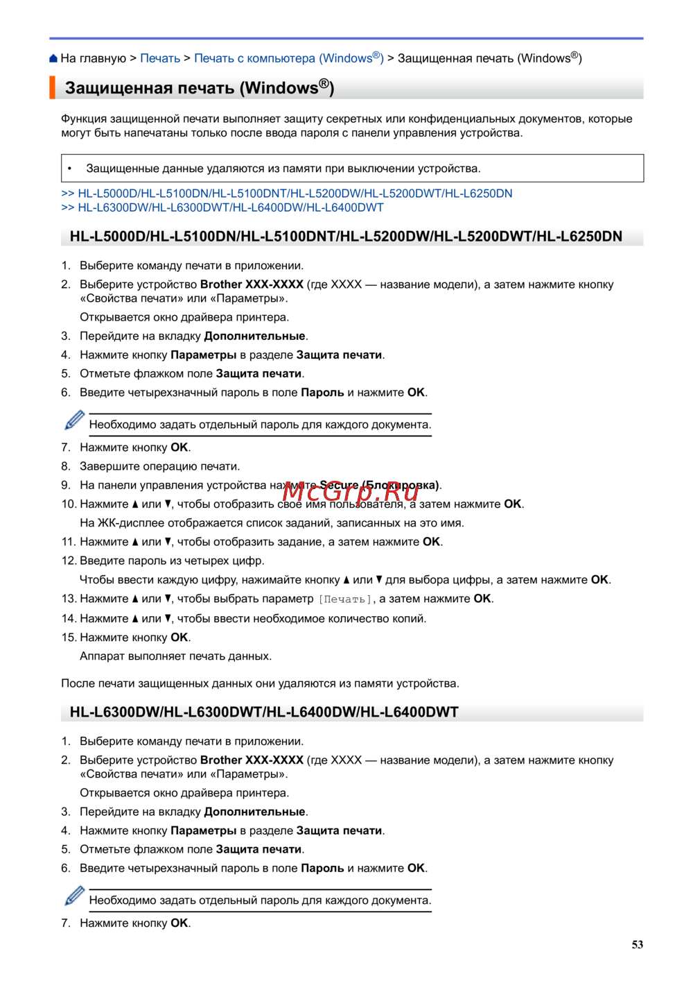 Brother HL-L6400DW — защищенная печать: Как настроить и использовать функцию печати [58/407]