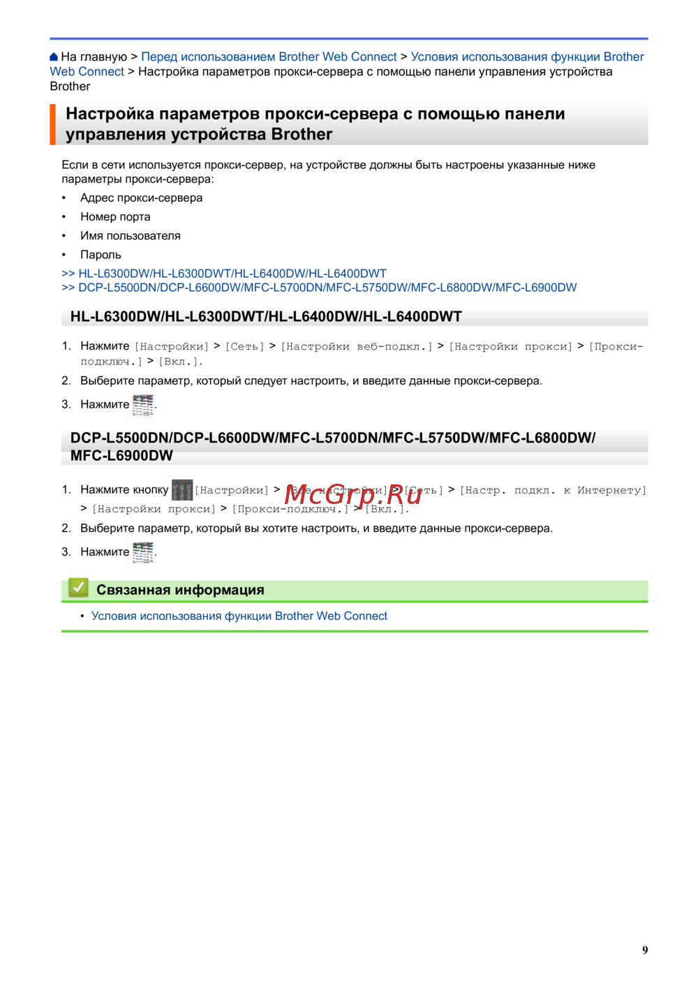 - Настройка параметров прокси сервера с помощью панели управления устройства brother p.14