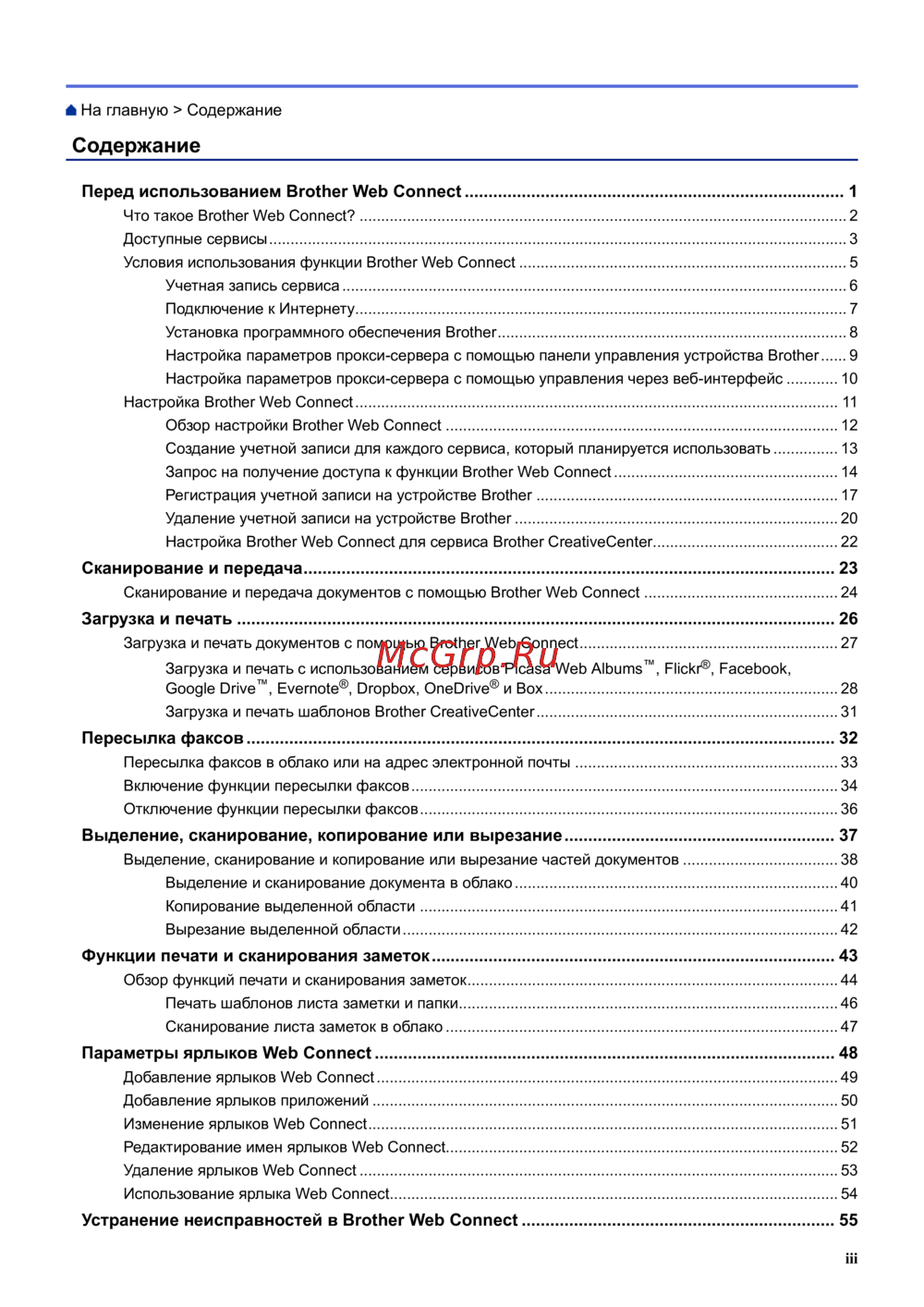 Устранение неисправностей в Brother Web Connect .................................................................. 55