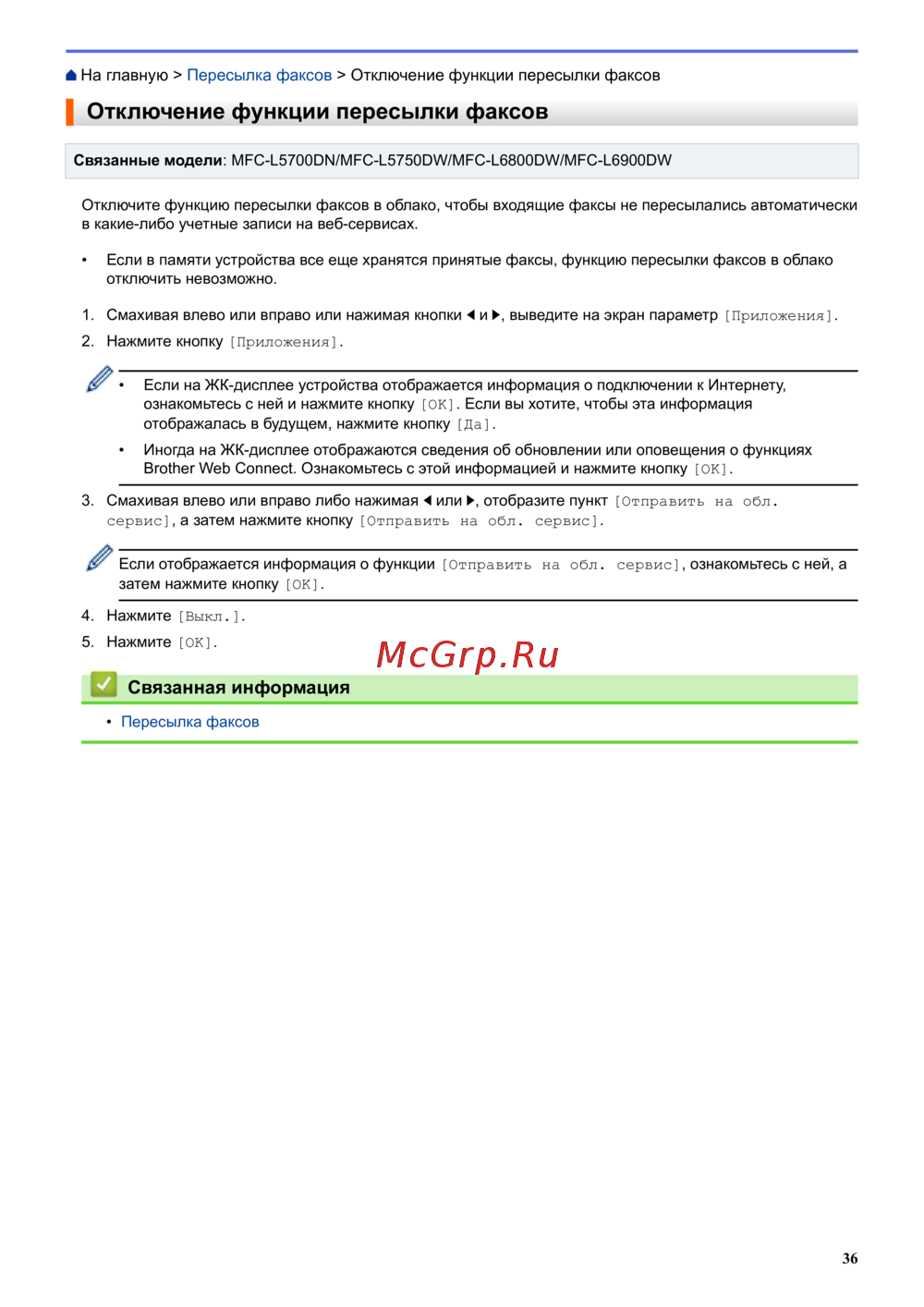 Связанные модели: MFC-L5700DN/MFC-L5750DW/MFC-L6800DW/MFC-L6900DW
