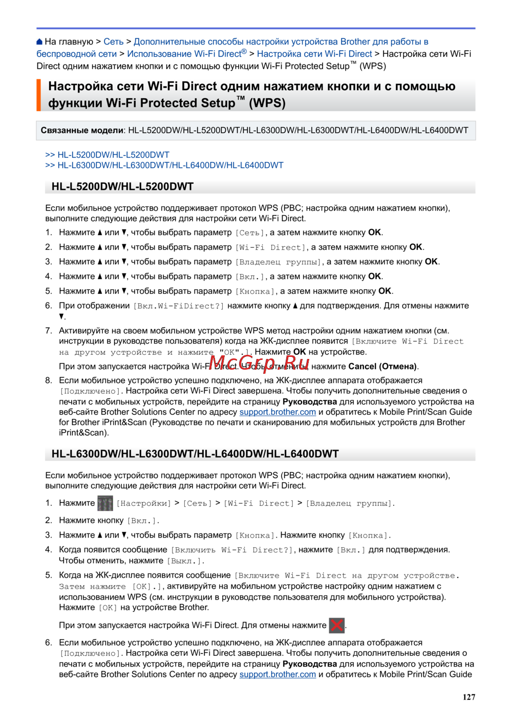 веб-сайте Brother Solutions Center по адресу support.brother.com и обратитесь к Mobile Print/Scan Guide