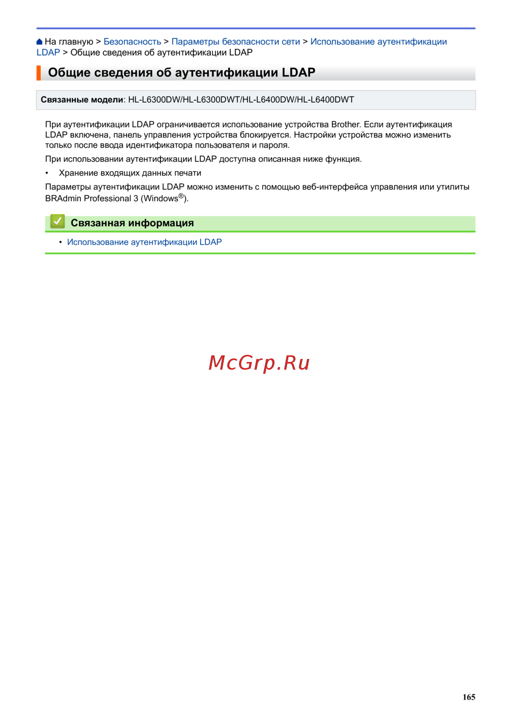 При аутентификации LDAP ограничивается использование устройства Brother. Если аутентификация