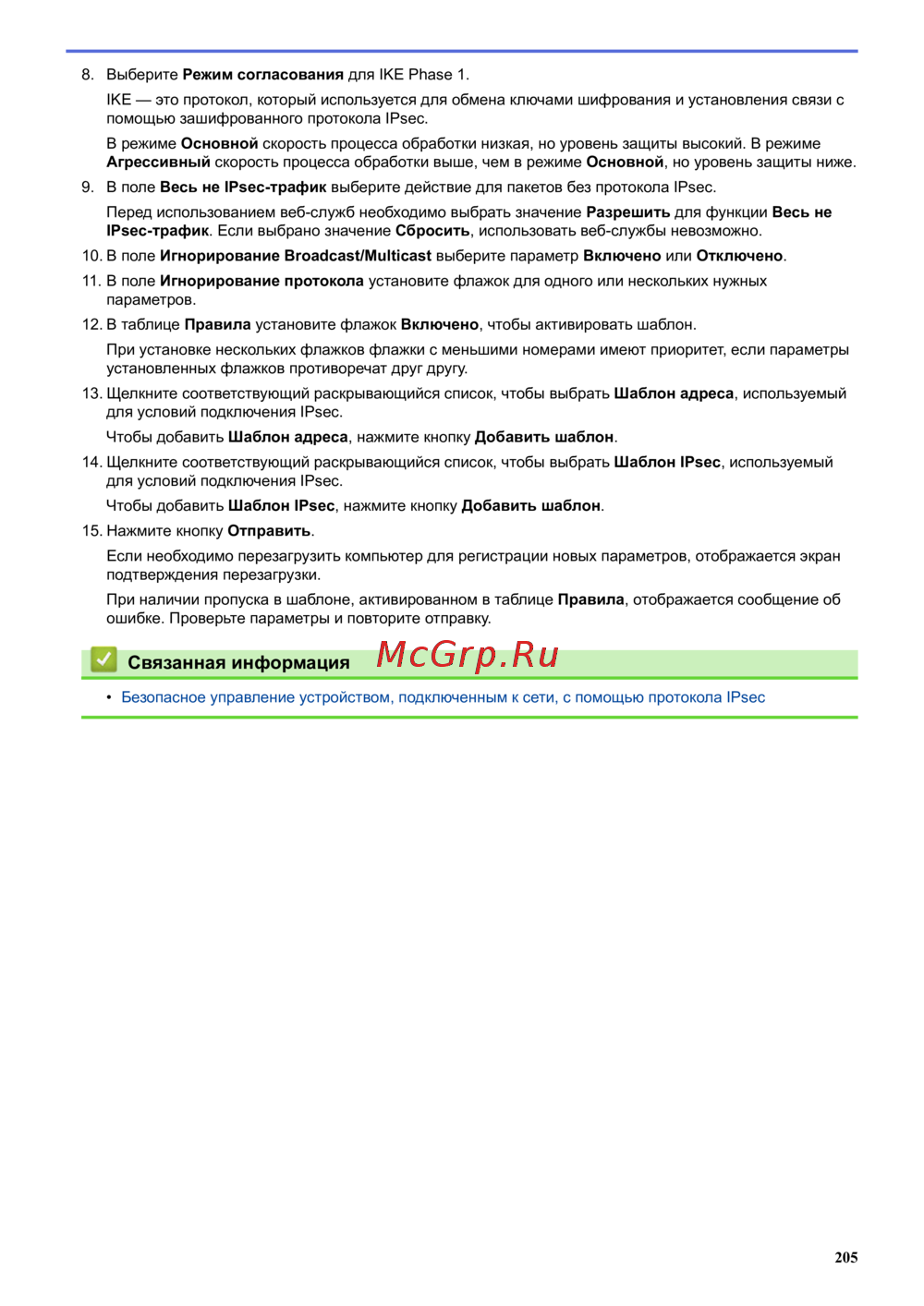 • Безопасное управление устройством, подключенным к сети, с помощью протокола IPsec