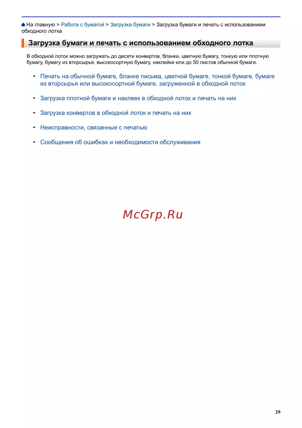 На главную > Работа с бумагой > Загрузка бумаги > Загрузка бумаги и печать с использованием