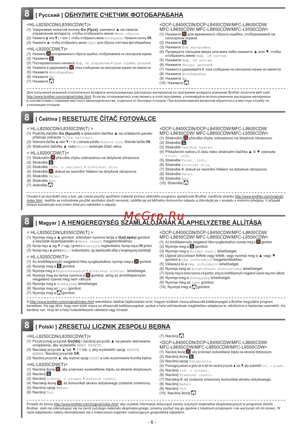 http://www.brother.com/original/index.html. Если вы отказываетесь участвовать в этой программе, утилизируйте использованные расходные материалы