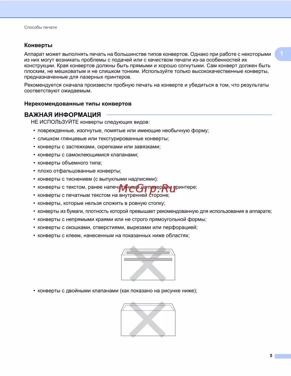 Brother HL-L8250CDN [12/226] Нерекомендованные типы конвертов