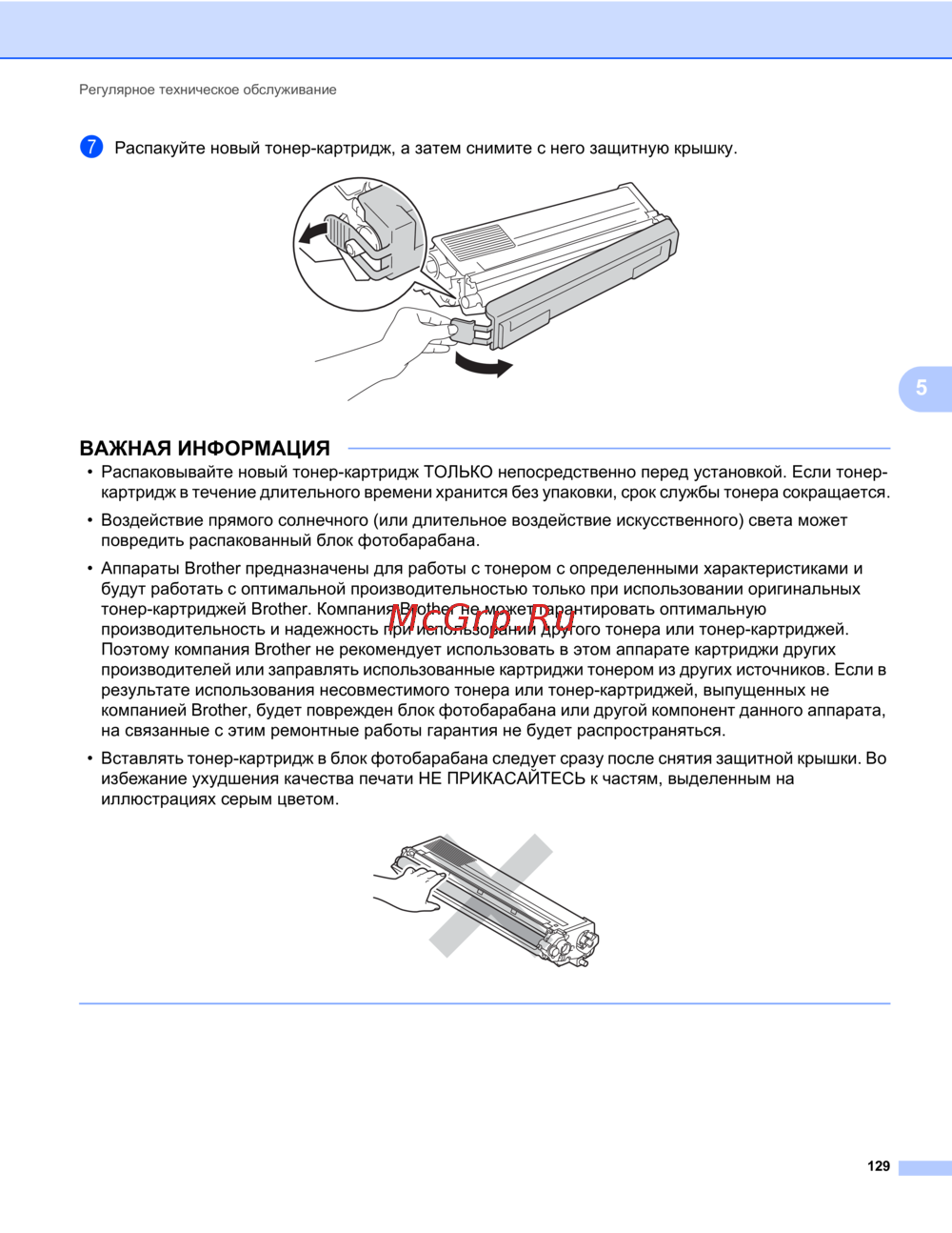 • Аппараты Brother предназначены для работы с тонером с определенными характеристиками и