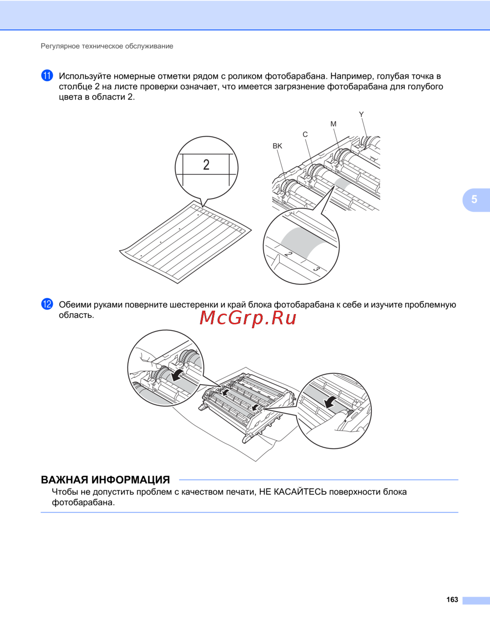 k Используйте номерные отметки рядом с роликом фотобарабана. Например, голубая точка в