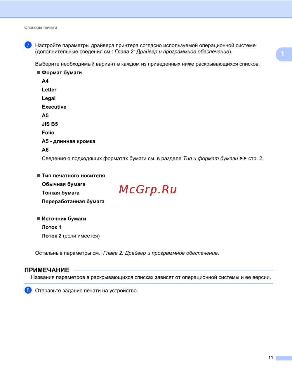 g Настройте параметры драйвера принтера согласно используемой операционной системе