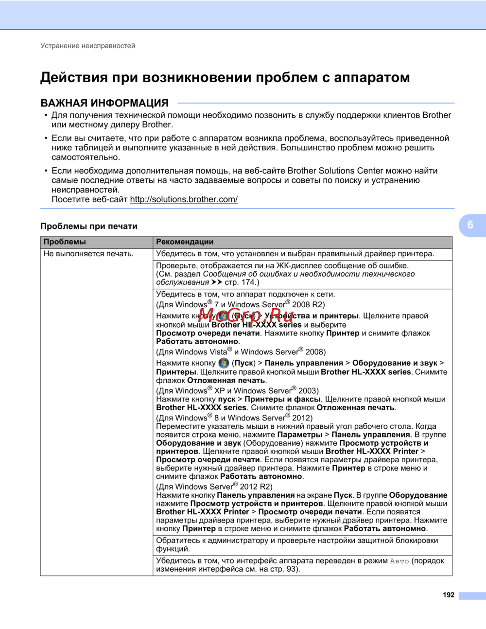 ![Brother HL-L8250CDN [199/226] Если вы считаете что при работе с аппаратом возникла проблема воспользуйтесь приведенной ниже таблицей и выполните указанные в ней действия большинство проблем можно реши...](/views2/1250994/page199/bgc7.png)