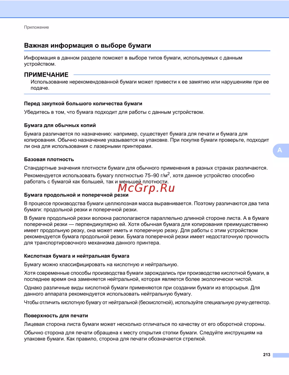 Brother HL-L8250CDN — рекомендации по выбору бумаги для печати и копирования [220/226]