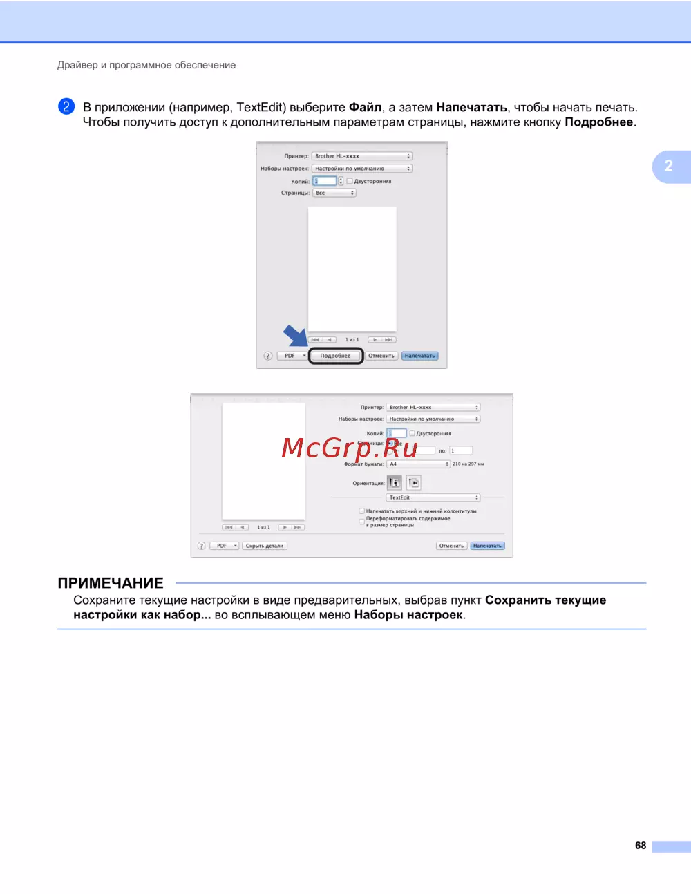 Драйвер и программное обеспечение